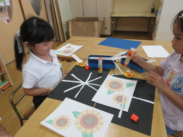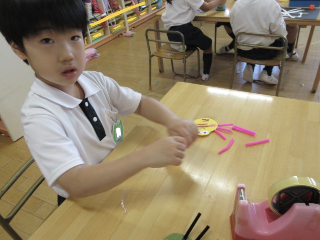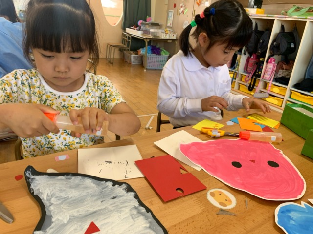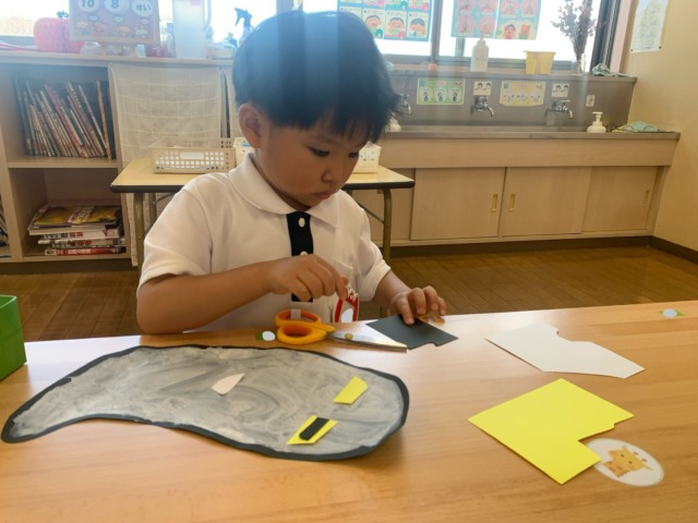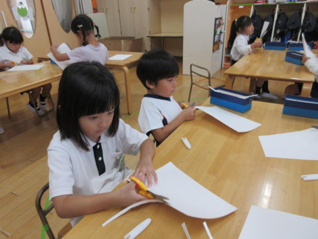 次の日には、画用紙で目や口を切り貼りして、おばけの顔を作りました✂️