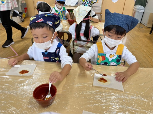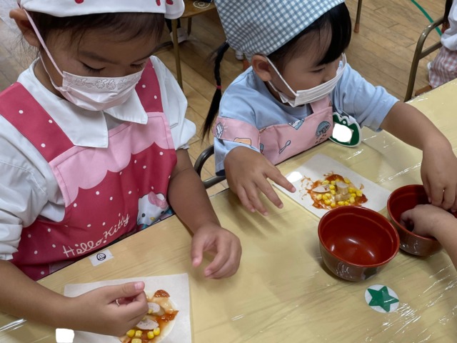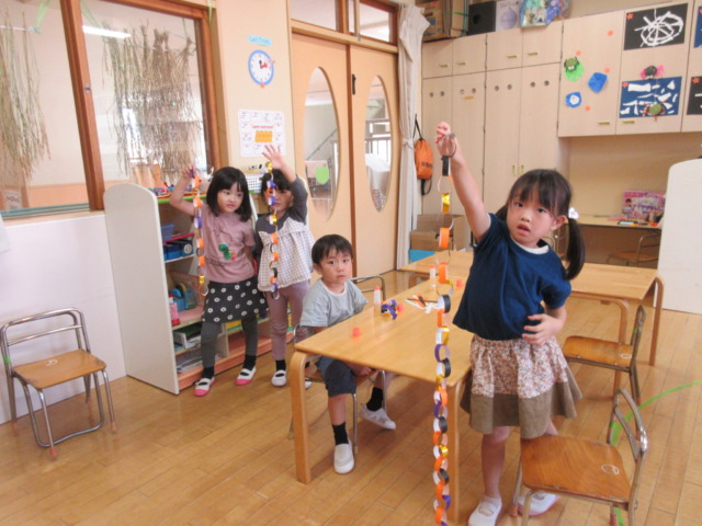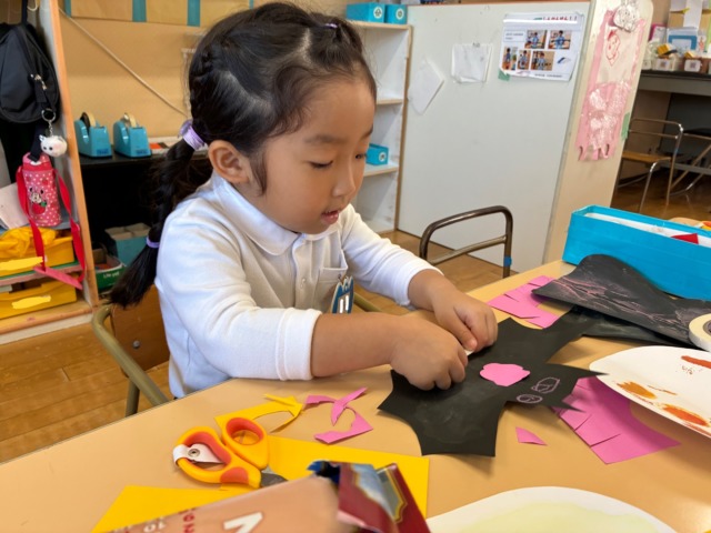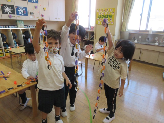 10月に入り、子ども達は、ハロウィン🎃の飾り物や変身グッズを作ったり、秋の季節の物の製作をしたり各クラス楽しんでいますよ⭐︎