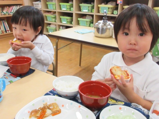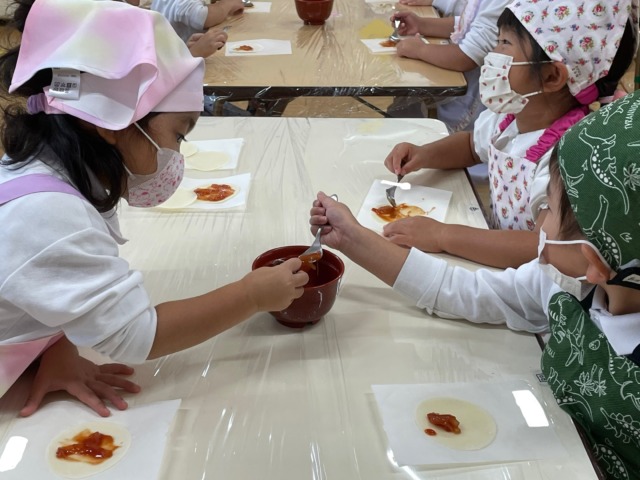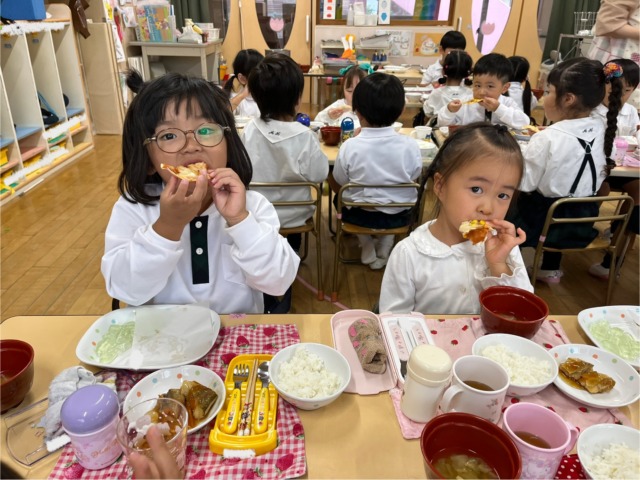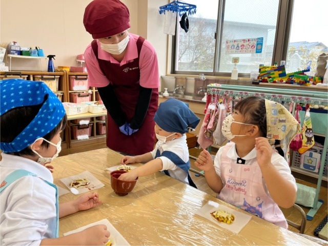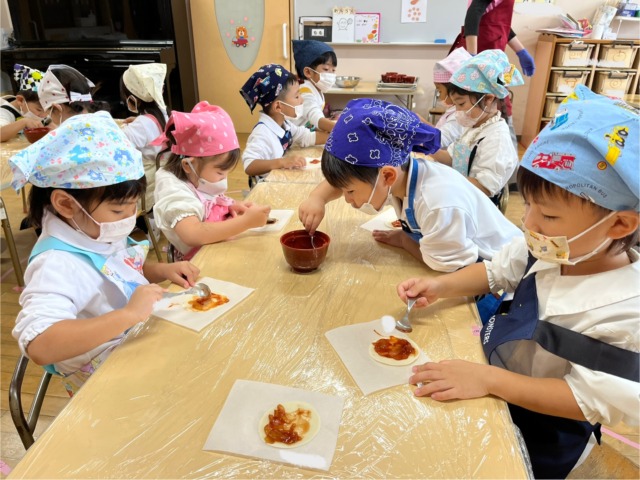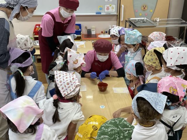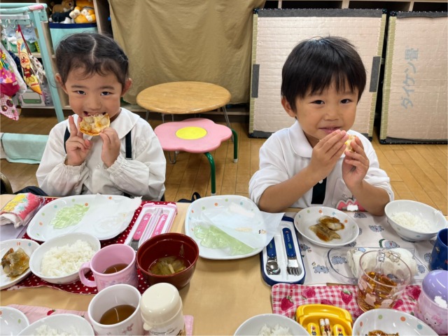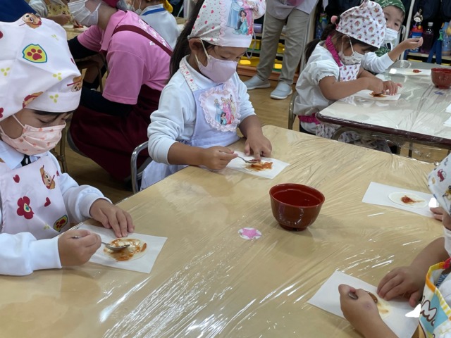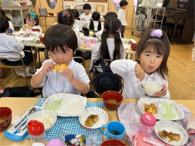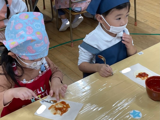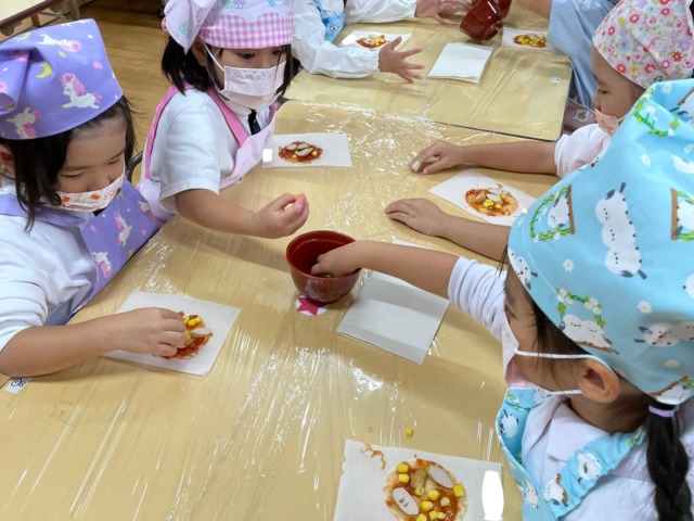 絵本の『ばけばけばけばけばけたくん』のお話も大好きな子ども達!次々とおいしそうな食べ物に変身していくばけたくんの姿に、大喜びで見ていました😌