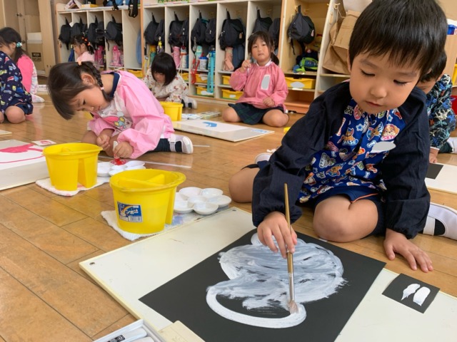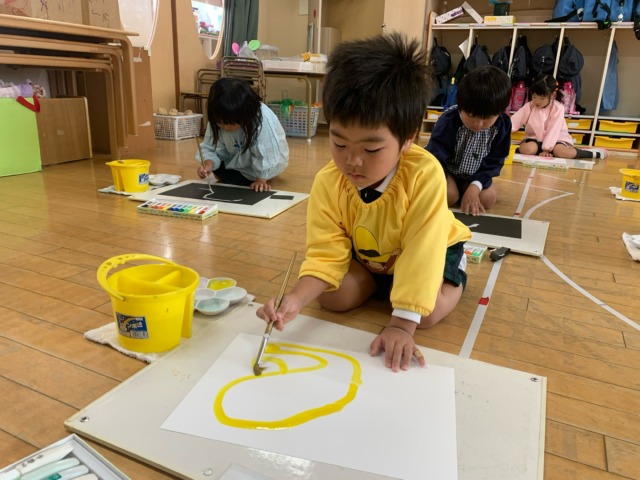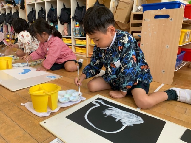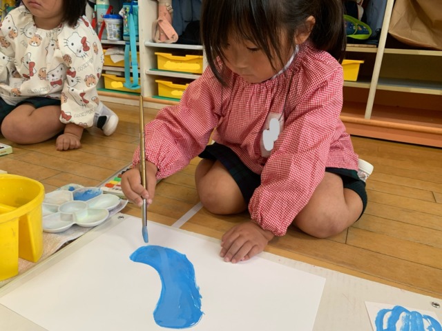 自分で好きな色を選び、丸いおばけや細長いおばけ、小さいおばけや大きいおばけなど…思い思いに自分の好きなおばけを描いていました♪