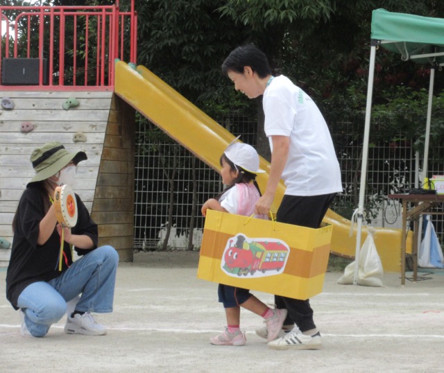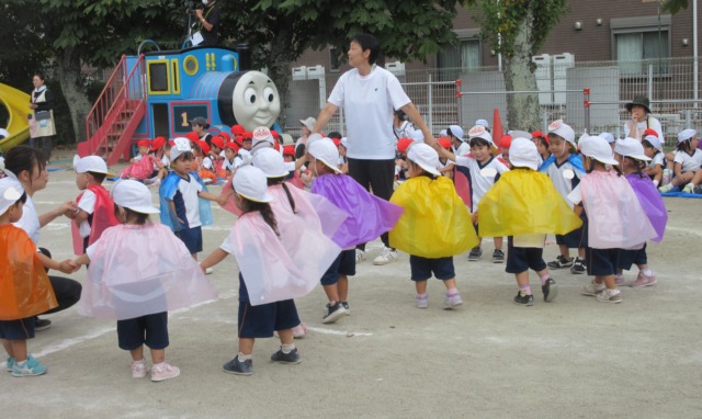 遊戯の入場では、友達と一緒に電車に変身して入場しましたよ。
