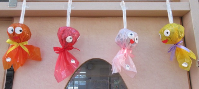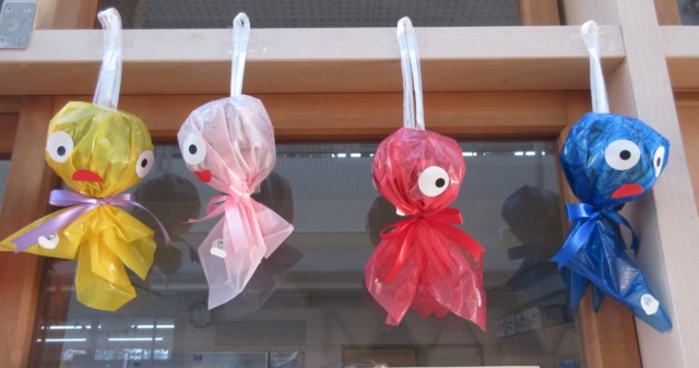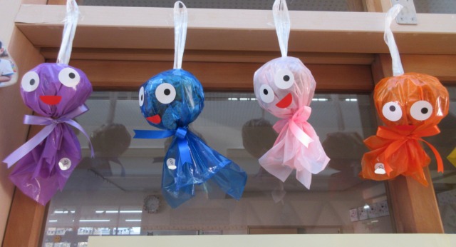 運動会の日は晴れますように…と、てるてる坊主を作ってお願いしました☼