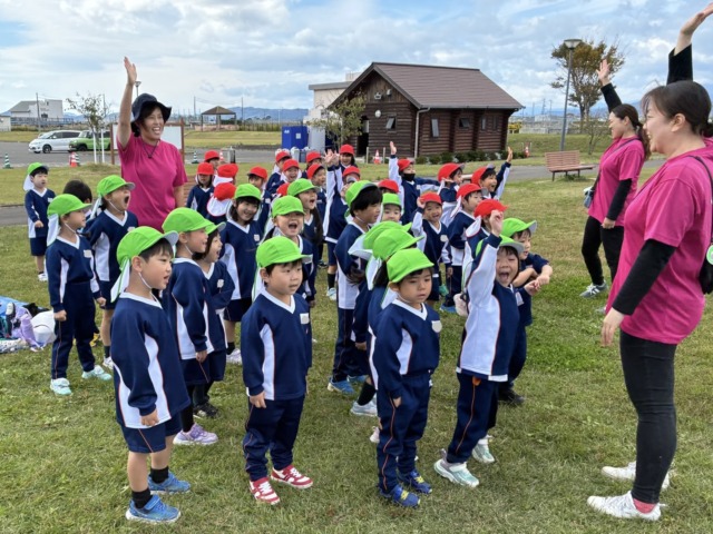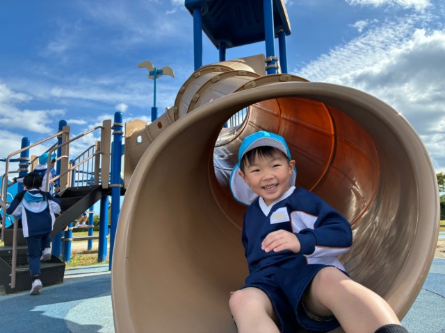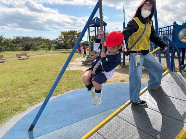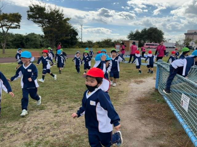 秋晴れの気持ちの良い天気の中、みんなで海浜緑地公園へ遊びに出かけました!「今日、公園に行くんだよね?✨」と、朝からワクワクな子ども達😊