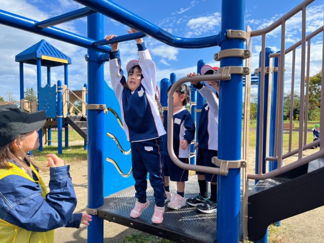 どの遊具も大人気で、それぞれ自分の好きな遊びを見つけて遊んでいました♪「一緒に遊ぼう😊」と、友達と誘い合って遊ぶ様子もあり、思う存分楽しむことができた年中組さんでした♪