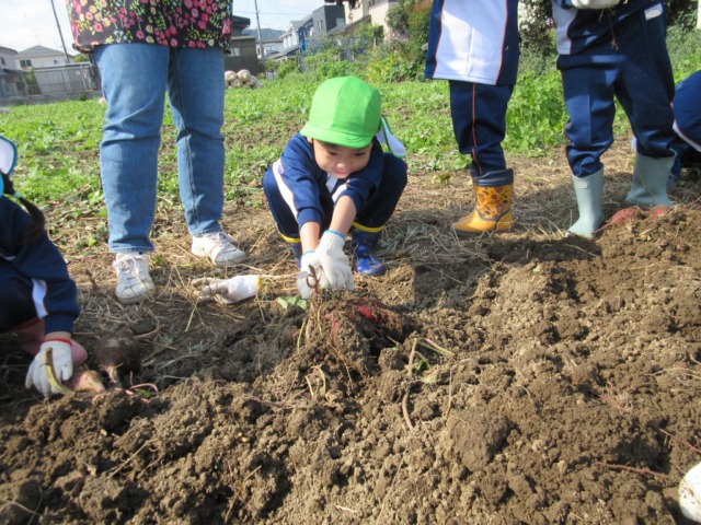 なかなか掘れないさつまいもは、友達と力を合わせて一緒に掘る様子もあり、とても微笑ましかったですよ😊