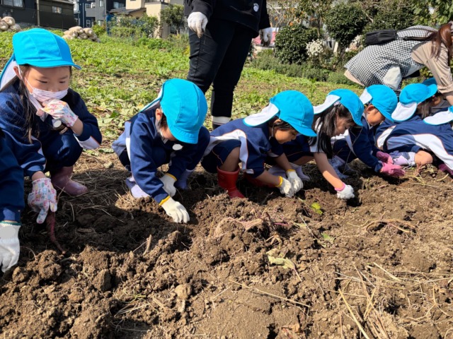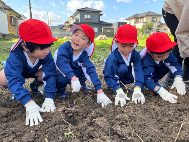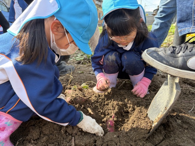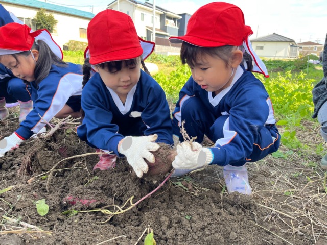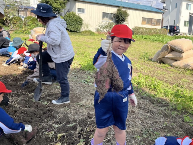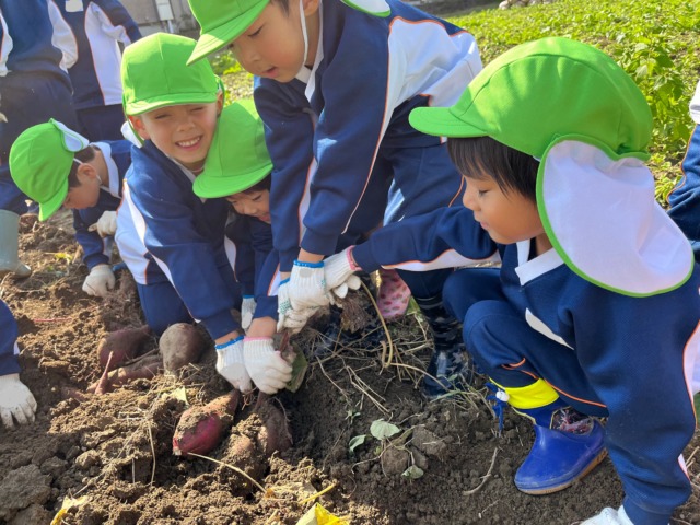 土を掘ると、次々とゴロゴロ出てくるさつまいもに「さつまいもあった〜!!✨」「やったあ!掘れたよ〜!」と大興奮でした😌