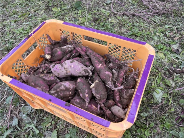 収穫したさつまいもを集めると、どのクラスもカゴいっぱいに集まりました🍠