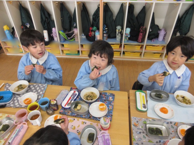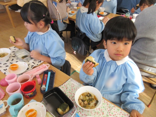 みんなで作った餅は、お手伝い係のお母さん方が「醤油のり餅」にしてくれました!