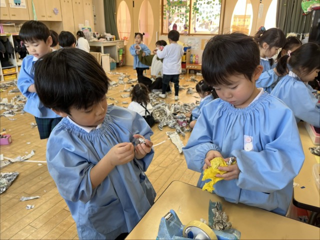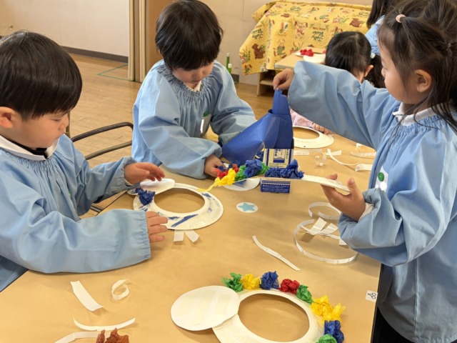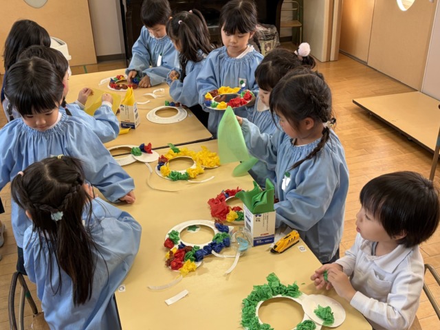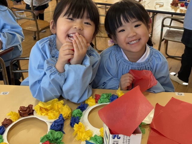 2月に節分があることを知ると、豆まきをして鬼をやっつけたい気持ちになった年少組の子ども達です!豆まきを楽しむためにはどんな物が必要なのかを相談して、各クラスで用意しています♪