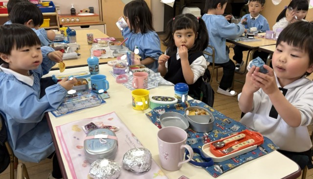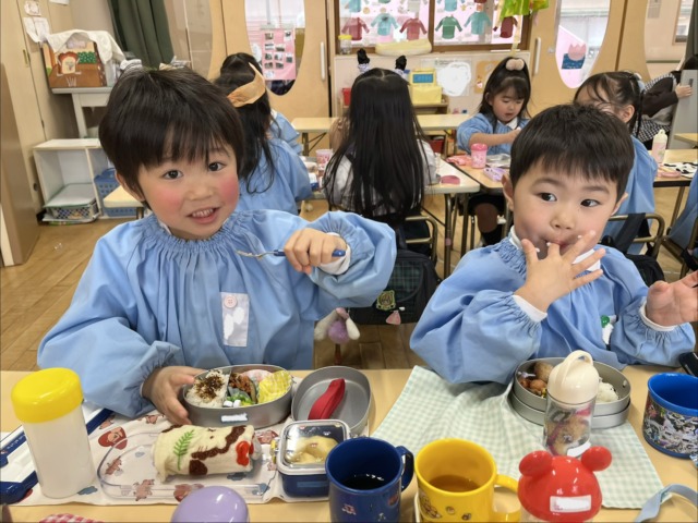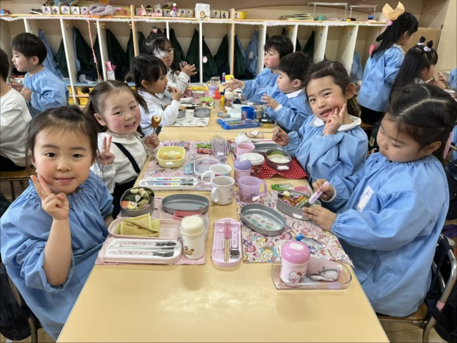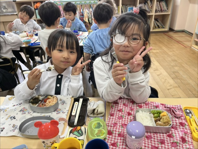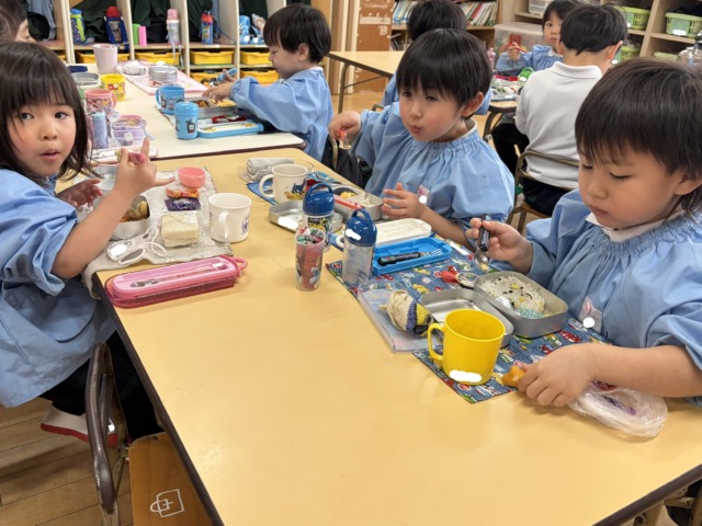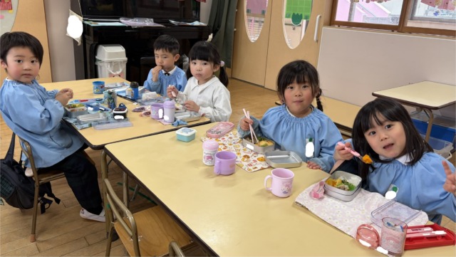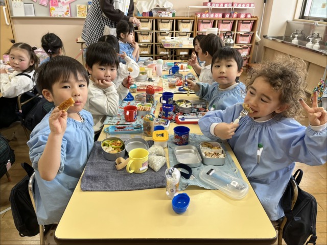 「今度お弁当一緒に食べてみたい!」という子ども達の願いが叶って、もも組&こすもす組の子ども達でお弁当交流会をしました🩷行きたいクラスを自分で決めて、ドキドキ、ワクワクしながらお弁当を食べました。