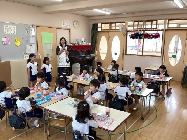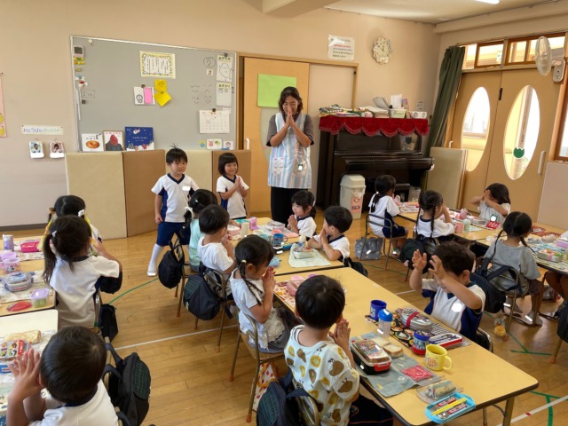 お昼ご飯の時には、お当番さんが前で「いただきます」の挨拶をしています!