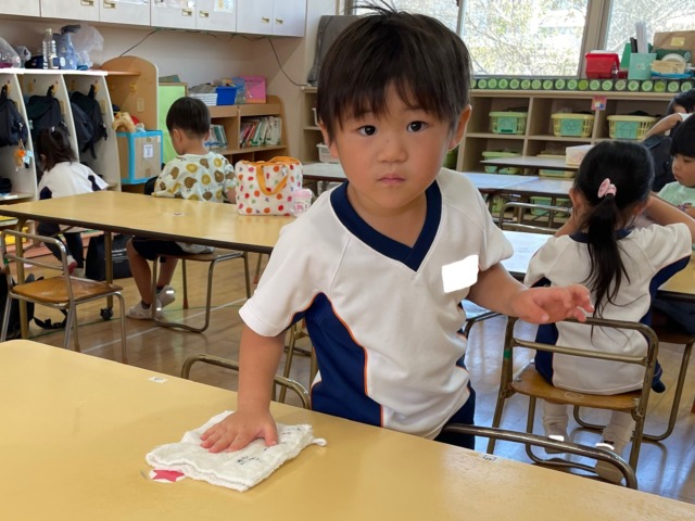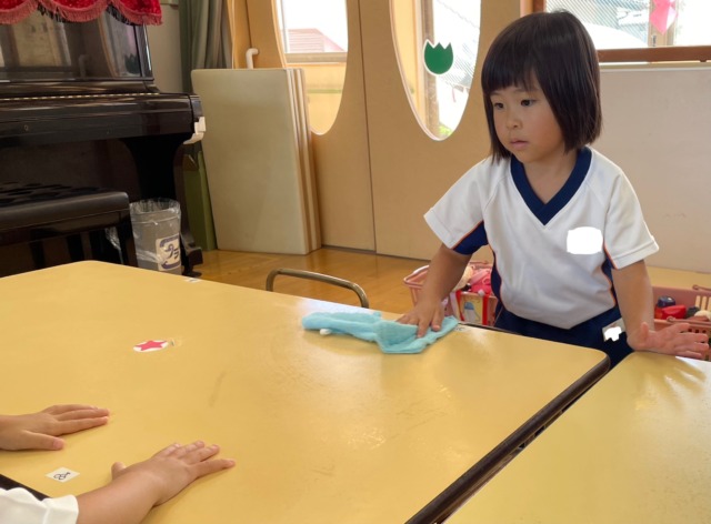 テーブルを拭くのもお当番さんが拭いてくれています!