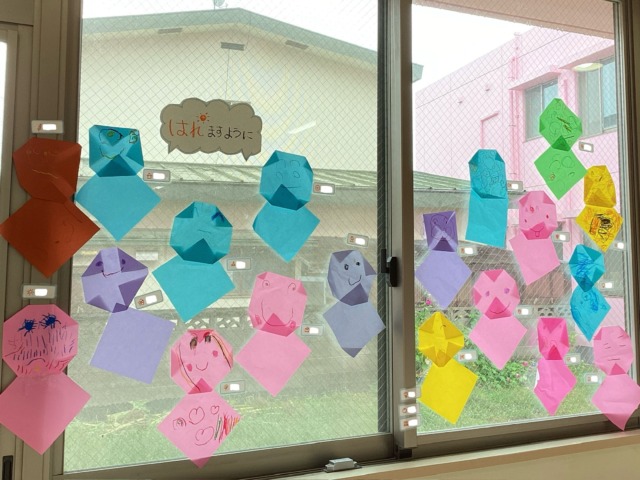 「月曜日晴れますように☀️」こすもす組のてるてる坊主です♪