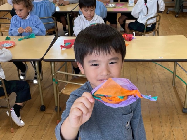 子ども達に、『ハロウィン🎃って知ってる?』と尋ねると『知ってる〜!お菓子を渡したり、貰ったりするんだよ!』と、とても詳しく話してくれました。
