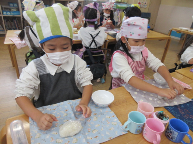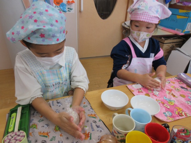 ラップの上にご飯をのせて、にぎにぎにぎ…🙌