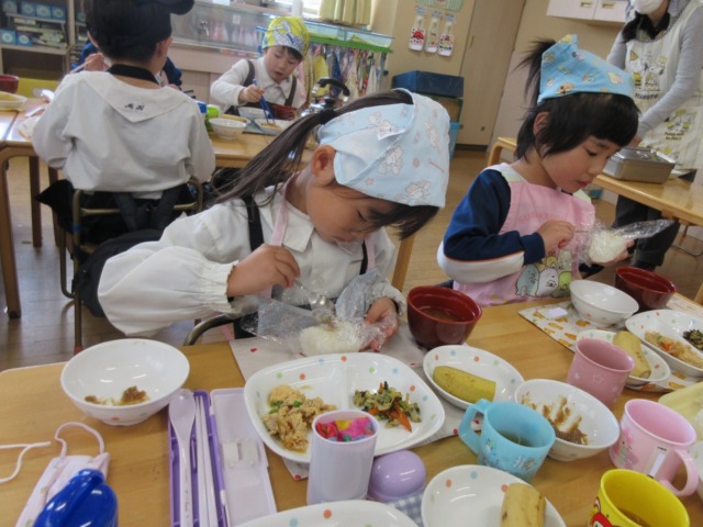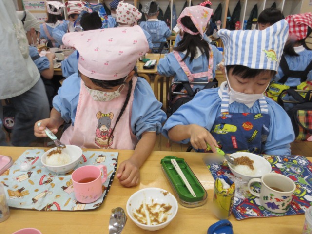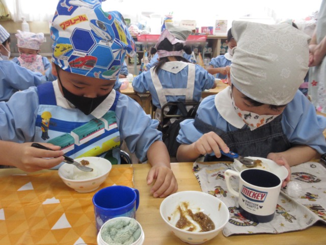 年中組の時に仕込んだ味噌が美味しく出来上がりました♡
