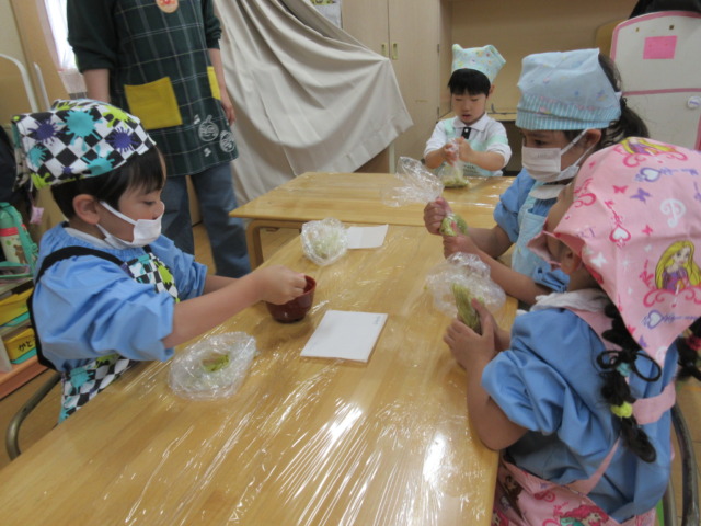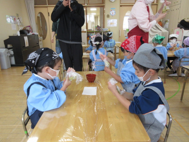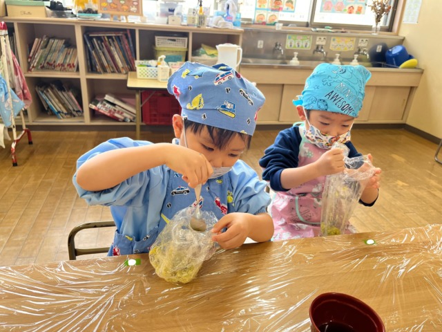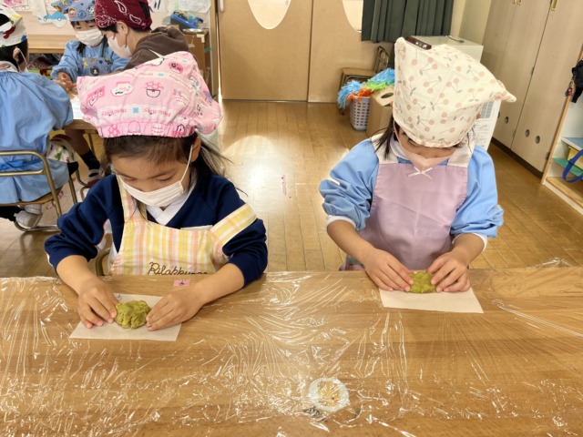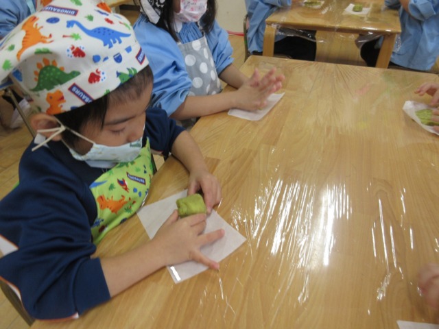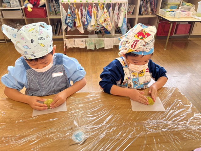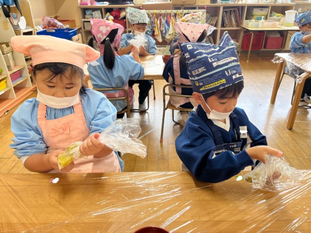 今週18日(火)に、幼稚園の畑で収穫したサツマイモ🍠を使いスイートポテト作りをしました。