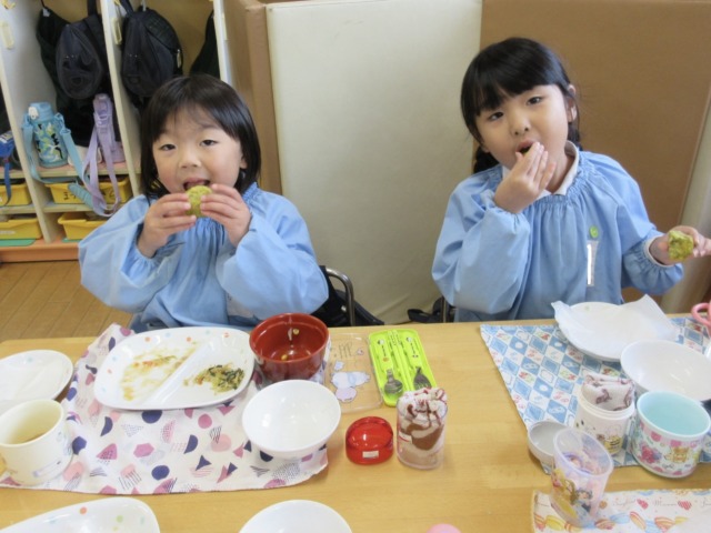 自分で作ったスイートポテトはとっても美味しかったようで、『おいしい〜!!』と、どの子もあっという間に完食していました☺️