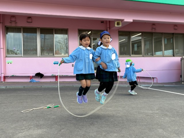 縄跳びでは色々技に挑戦!!なかよし跳びができるようになりました!