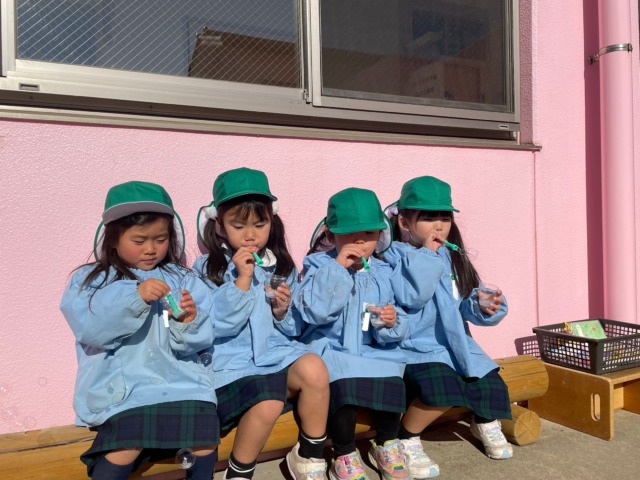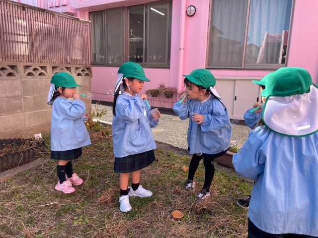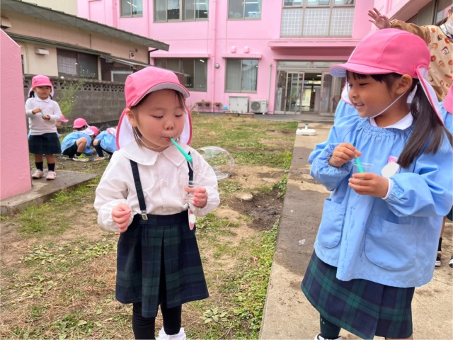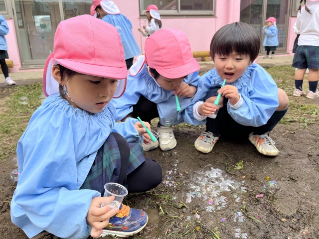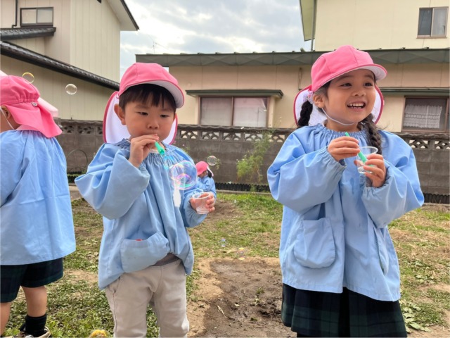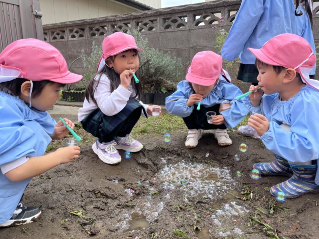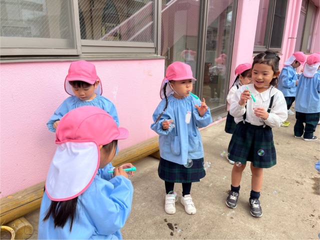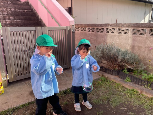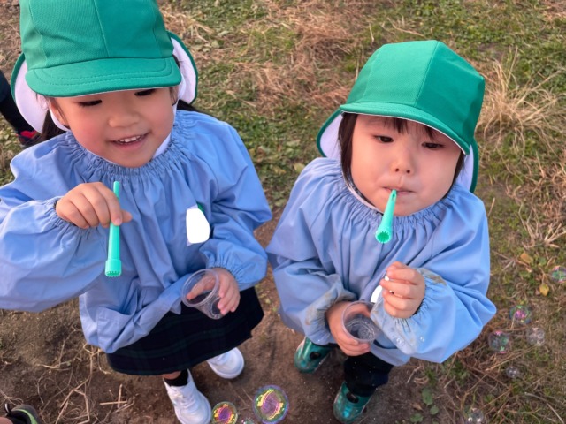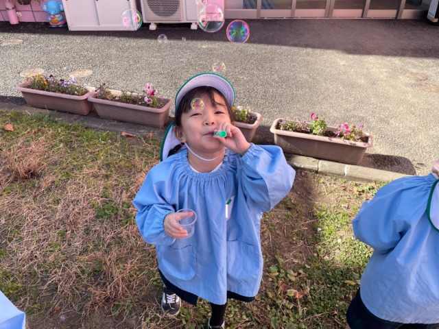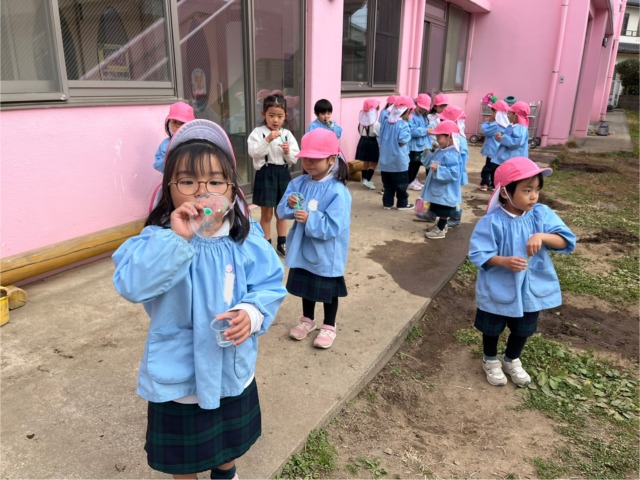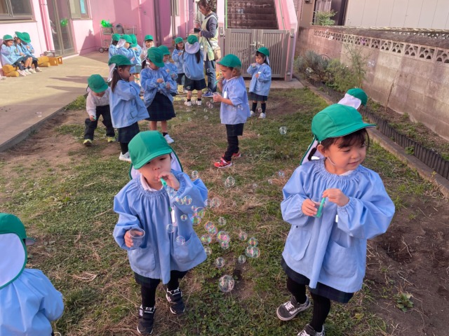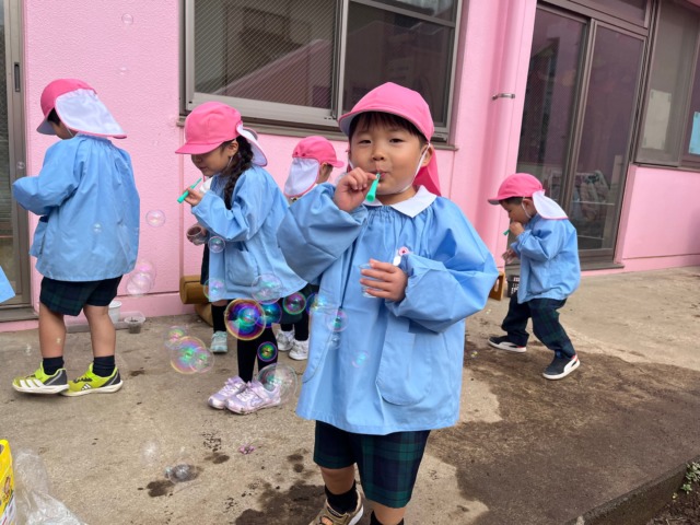 みんなで一緒に中庭でシャボン玉をしました🫧