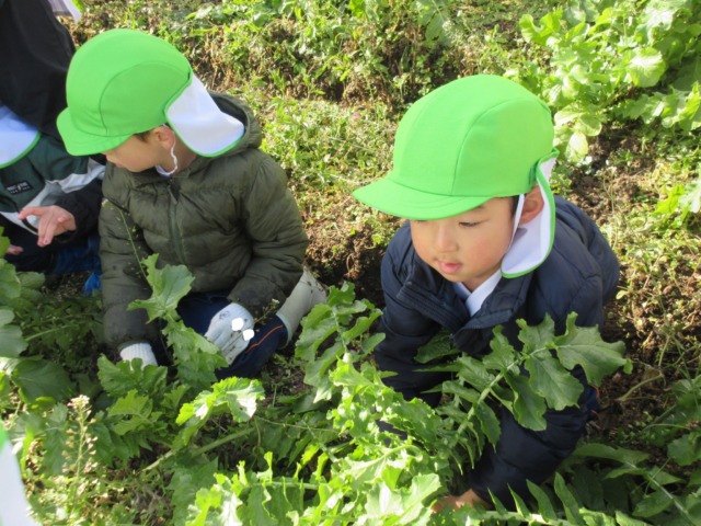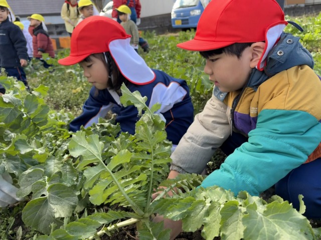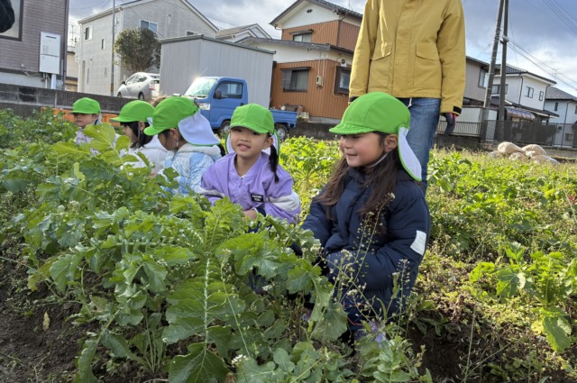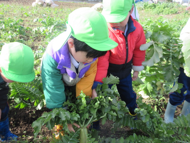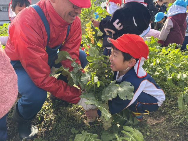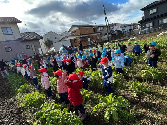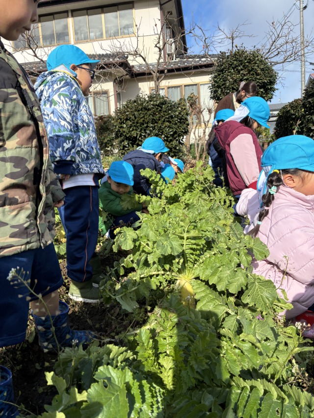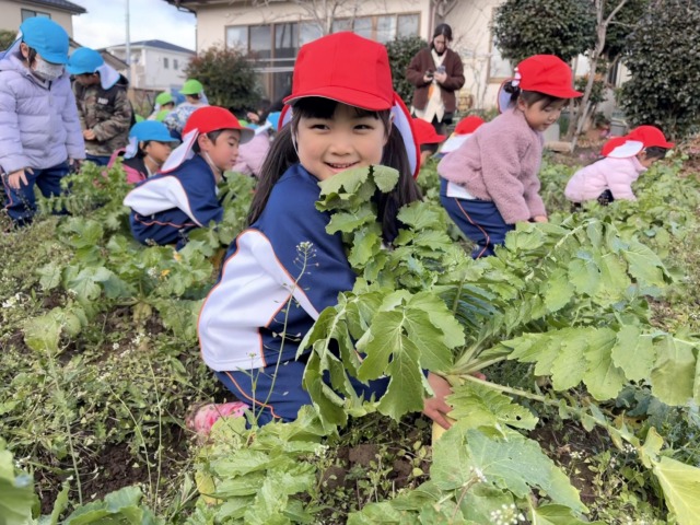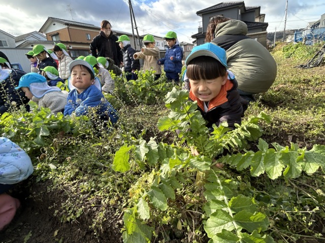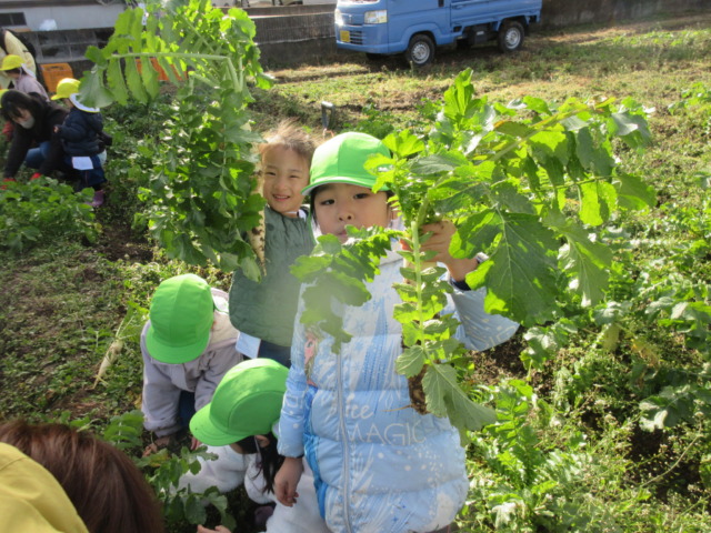 9月に種蒔きした大根が収穫の時期を迎えて、年中組みんなで幼稚園の畑に行ってきました!