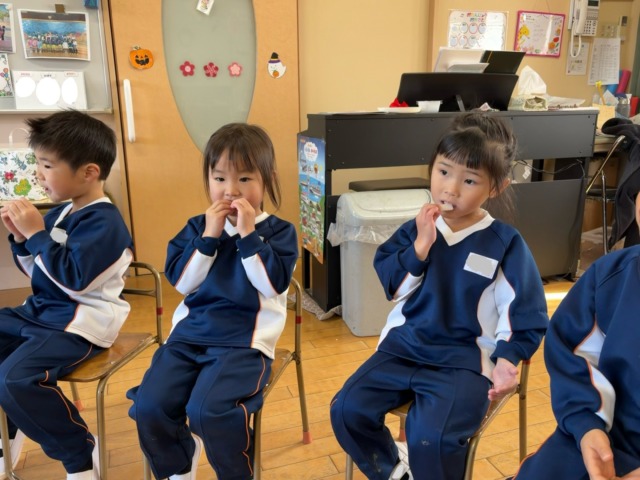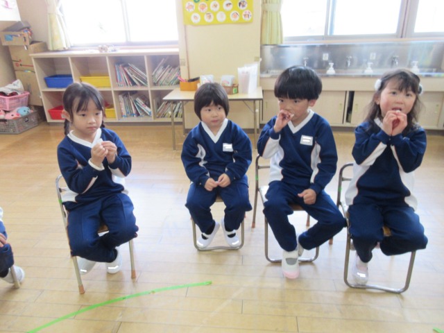 『ニャニュニョの天気予報』『キッチンオーケストラ』『ジングルベル』など、みんなの大好きな歌を歌って楽しみました♪身振り手振りをしながら、にこにこ笑顔で歌う姿はとっても可愛かったですよ😌