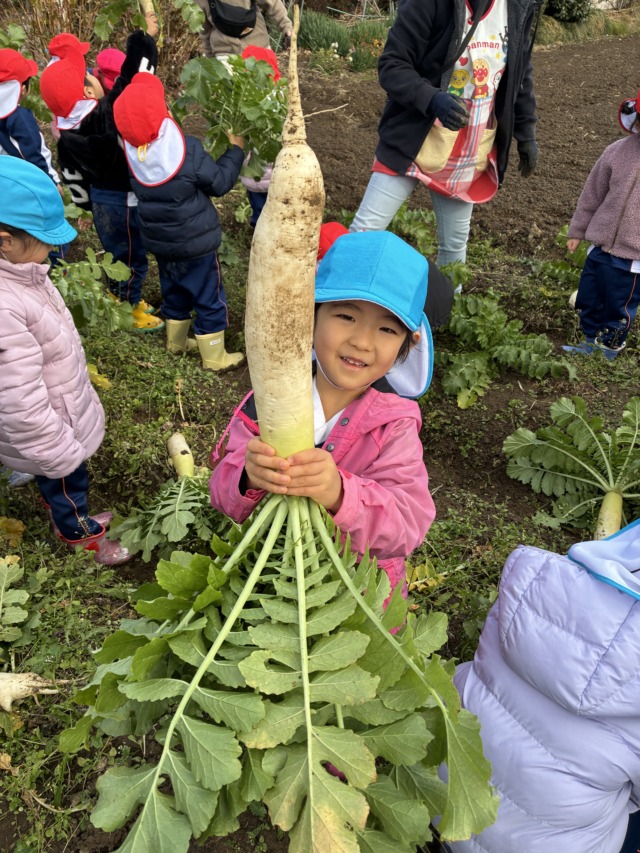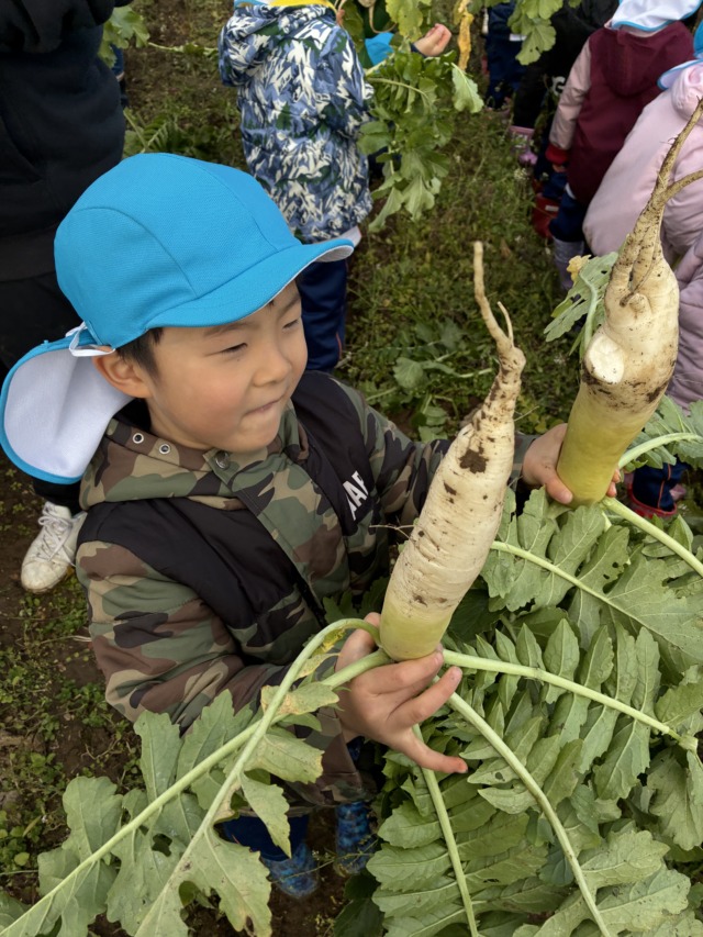 大きい大根や小さい大根、面白い形の大根など…自分で収穫した大根を見て「やった〜!とれたよ✨」と、大興奮の子ども達でした😊