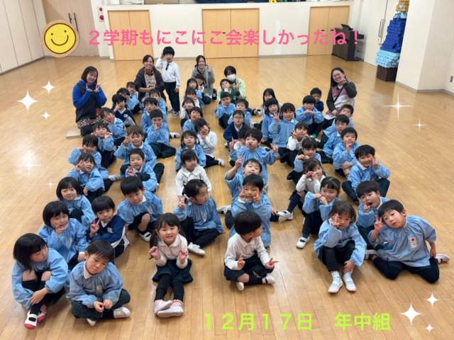 明日から冬休み⛄️ということで、2学期最後のにこにこ会を行いました。久しぶりに年中組みんなが集まり、子ども達は嬉しそうな表情をしていました😊