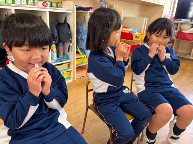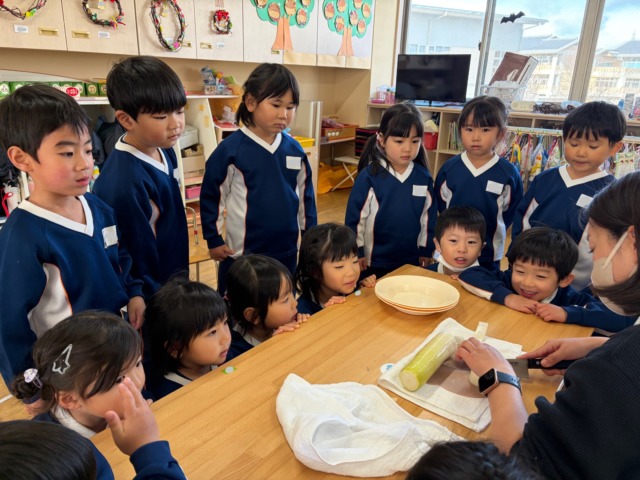 幼稚園に戻ってすぐ、採れたての大根はどんな味だろう?と、みんなで味見をすることになりました😌