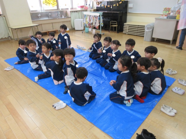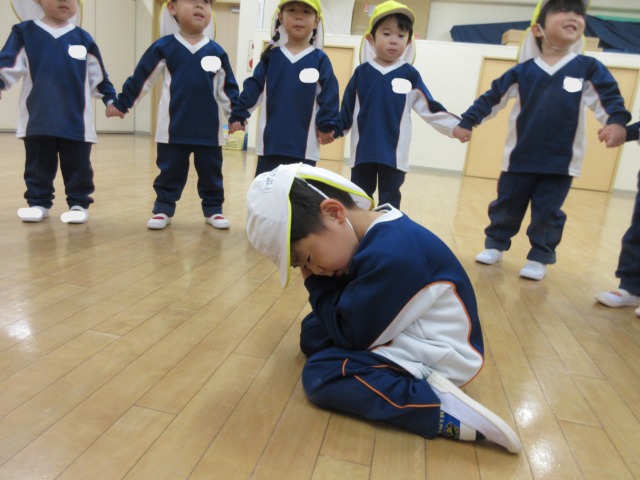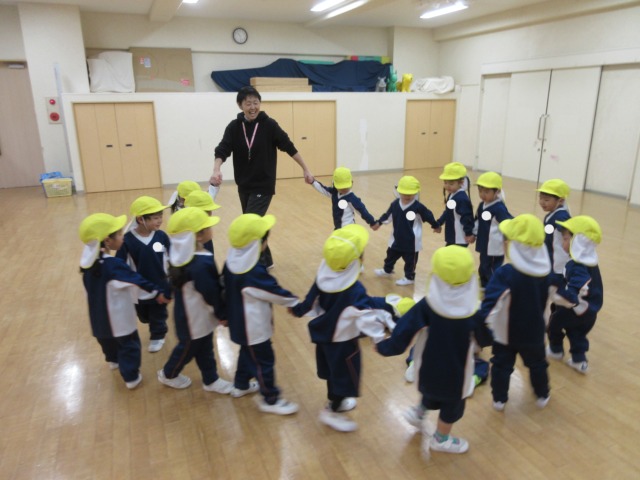 その後は、手を繋いで輪を作り「むっくりくまさん」をしました♪