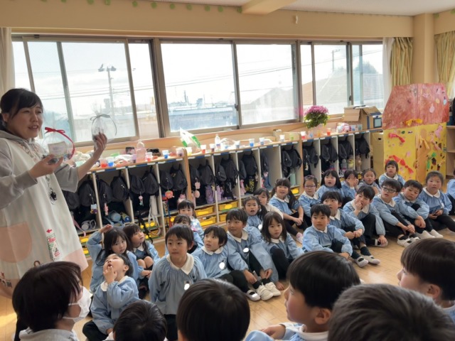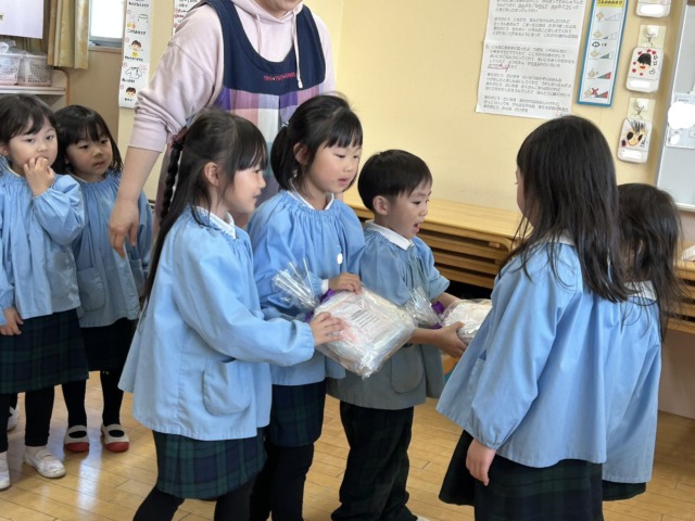 その後…なんと!年長組のお兄さん、お姉さんからも『すてきな年長さんになってね✨』と、年中組のみんなへのプレゼントがありました🎁