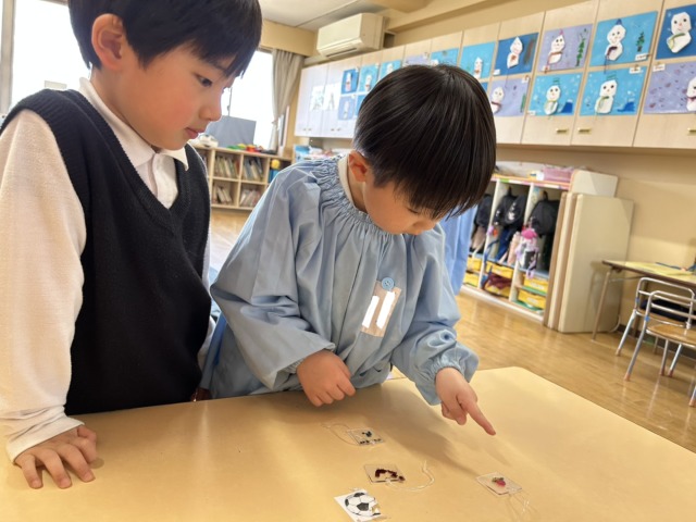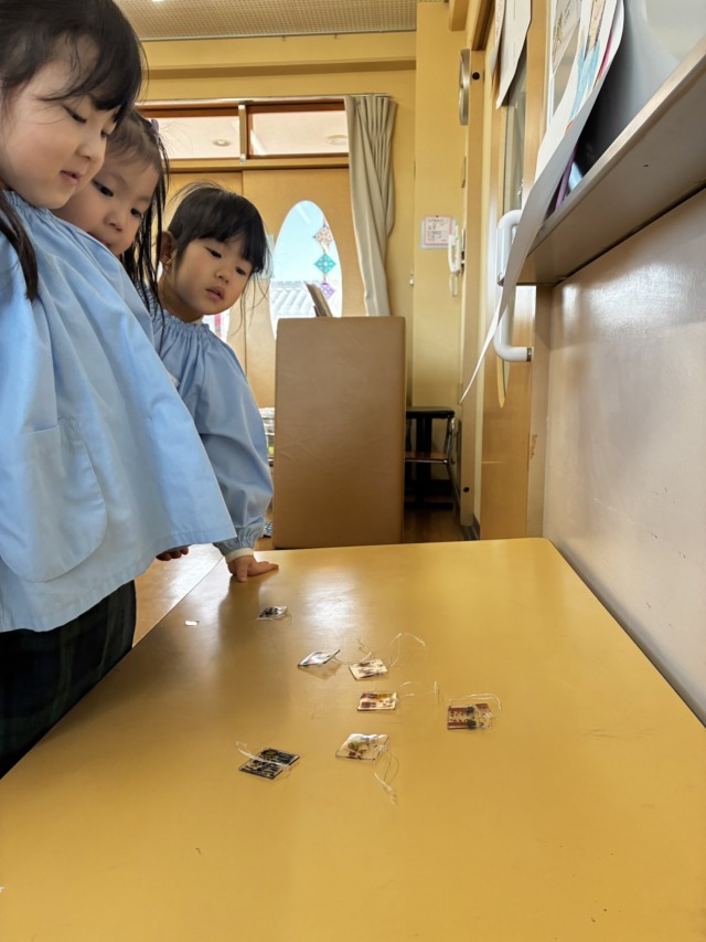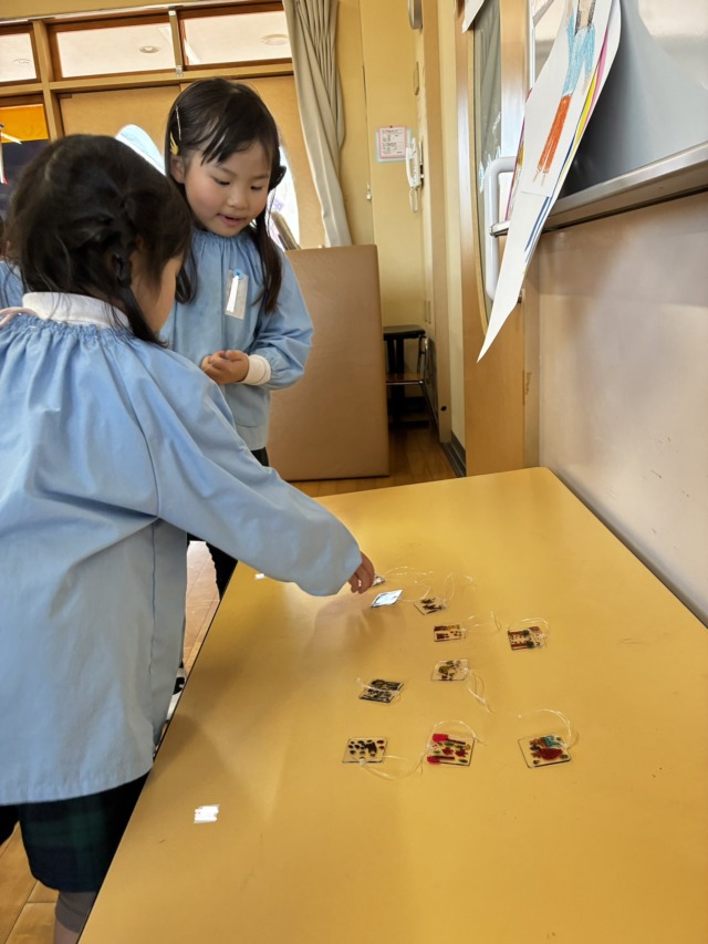 プラ板キーホルダーを選んだ後、友達と見せ合いっこをして喜んだり、「かばんに付けてもらう!」と嬉しそうな様子の子ども達でした😊