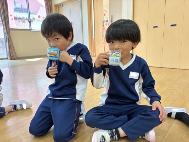 年中組最後の『にこにこ会』では、みんなで大きな輪をつくってカルピスで乾杯♪をしました!
