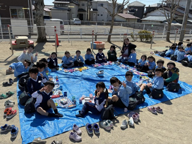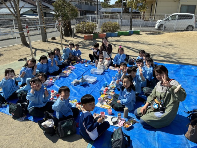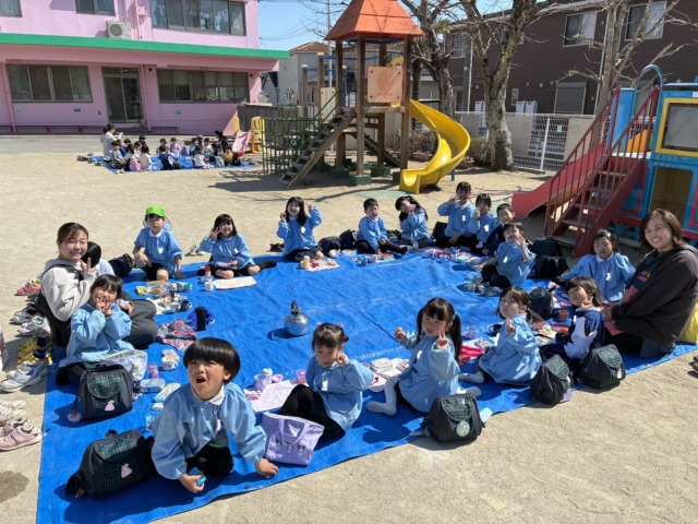 お弁当最終日の17日には、3クラス共に園庭にブルーシートを敷いてピクニックランチをしました🍙