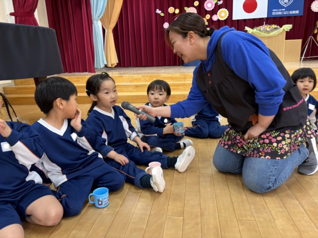 この一年の中で楽しかったことを尋ねると、「電子レンジおにごっこ!」「なわとび!」「お友達と一緒に遊んだこと!」など、それぞれの楽しかった思い出を教えてくれました😌