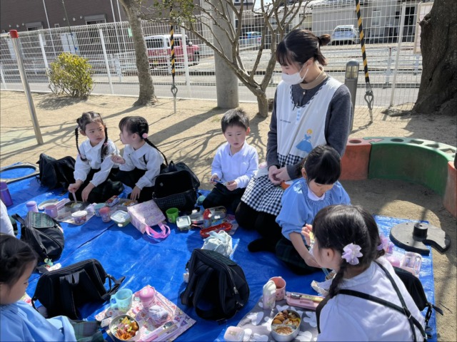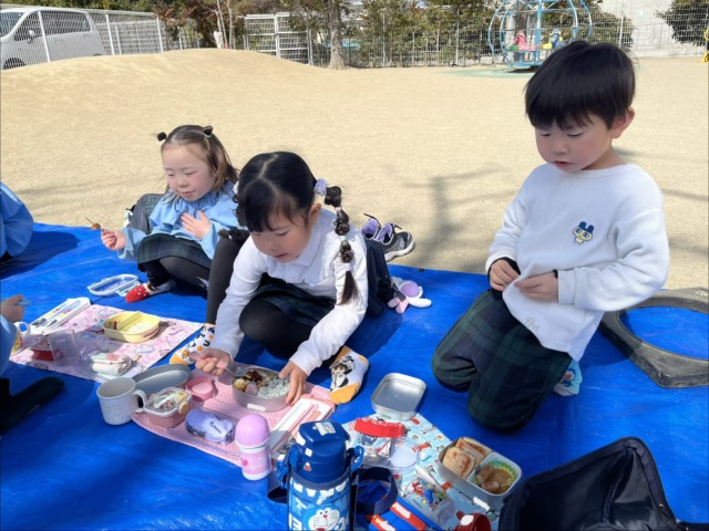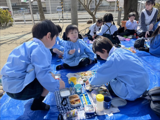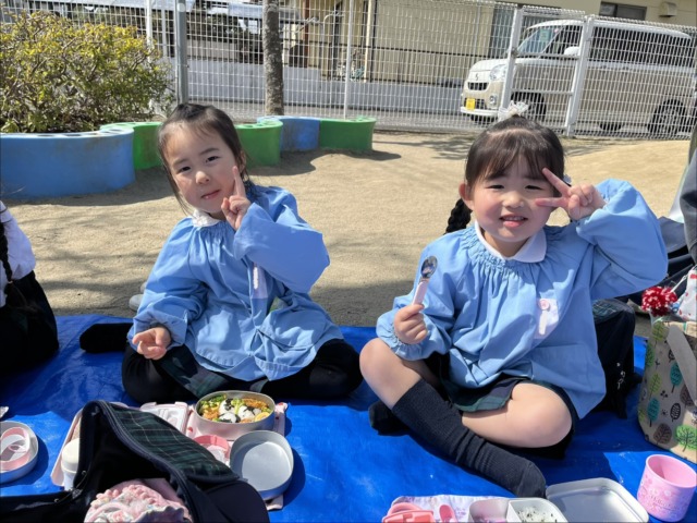 最後の思い出に、外でお弁当を食べました❤️