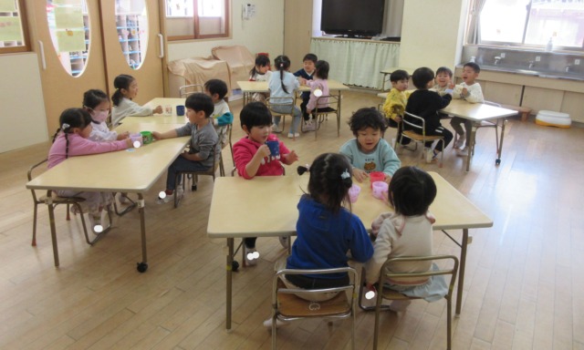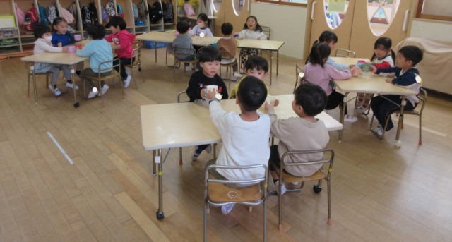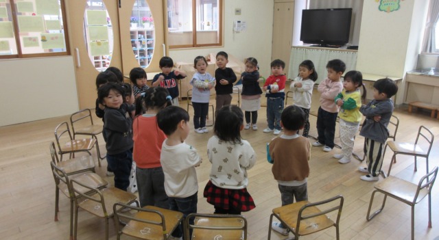 朝の会では、みんなで立って歌を歌いましたよ♬