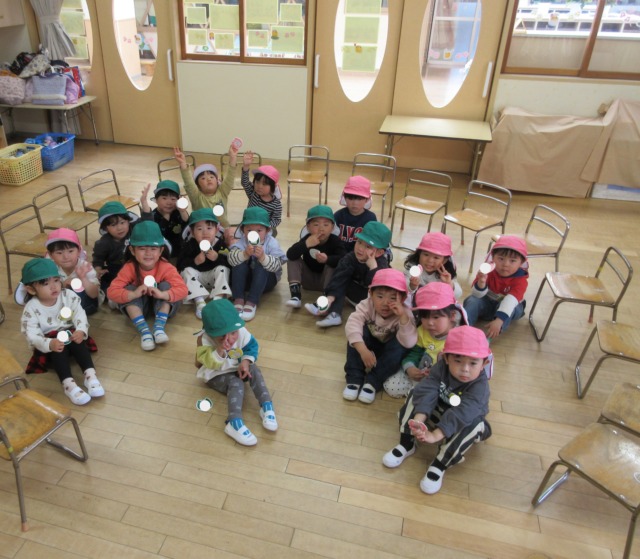 ピカピカの名札と新しいクラス帽子をもらって、嬉しそうな子どもたちでした☺